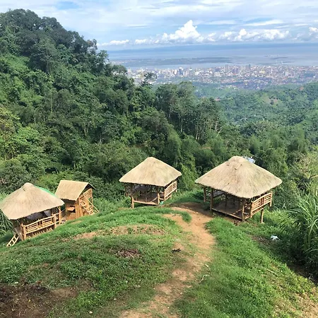 セブ動物園から4.5キロメートル離れた所離れた場所に位置する寝室1室のAguanga Cabin At Threesome Cafe セブ市では、テラスでリラックスすることができます。